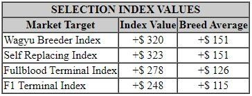 Im Rahmen der australischen Zuchtwertschätzung überzeugt er mit einem „Self Replacing Index“ (SRI) von +$ 320 (Stand 06/2021), womit er zu den Top 1 % der weltweiten Wagyu-Population zählt.